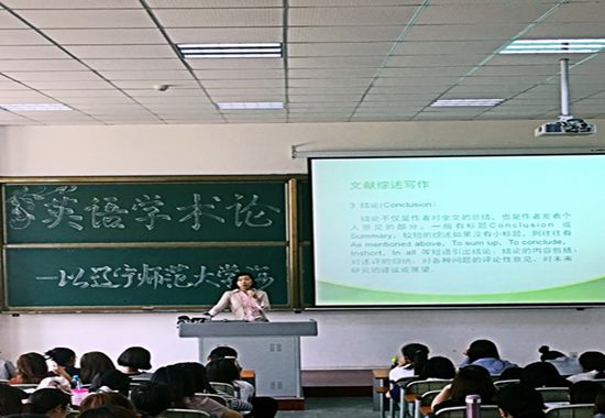 2017年6月7号下午两点辽宁师范大学海华学院外语系于教学楼133教室举办英语学术论文写作讲座,主讲老师为外语系主任梁娜。