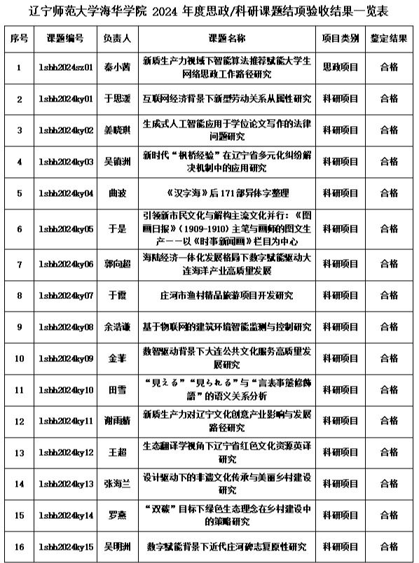2024年度校级思政/科研课题结项验收结果公告