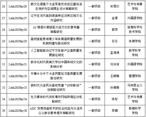 根据《辽宁师范大学海华学院关于开展2025年度校级科研项目申报工作的通知》(科字〔2025〕25号)文件要求,我校开展了校级科研项目立项工作。经专家评审,2025年校级科研立项项目35项,其中重点项目6项、一般项目29项,现对立项项目提出如下要求: